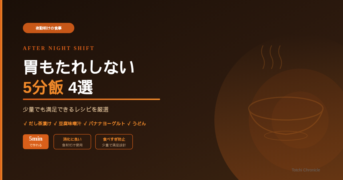 クイックレシピ 「夜勤明けに少しだけ食べてすぐ寝たい」を叶える5分飯4選|胃もたれ・食べすぎを防ぐ介護士の工夫